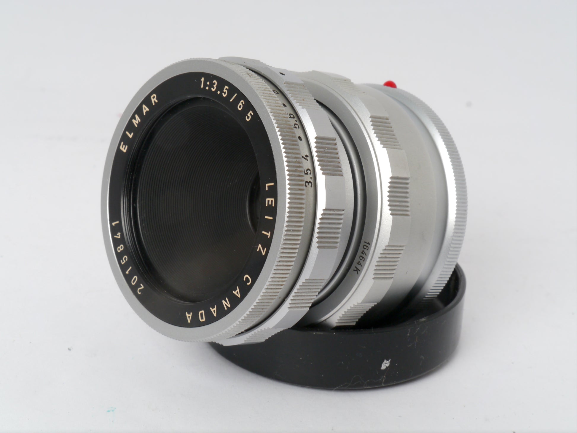 Leica Elmar 3,5/65 mm chrom inklusive Einstellschnecke Art. 16464 sowie Visoflex II mit 90° Lupe Art. OTVXO / 16461 in sehr gutem, voll funktionsfähigem Zustand.